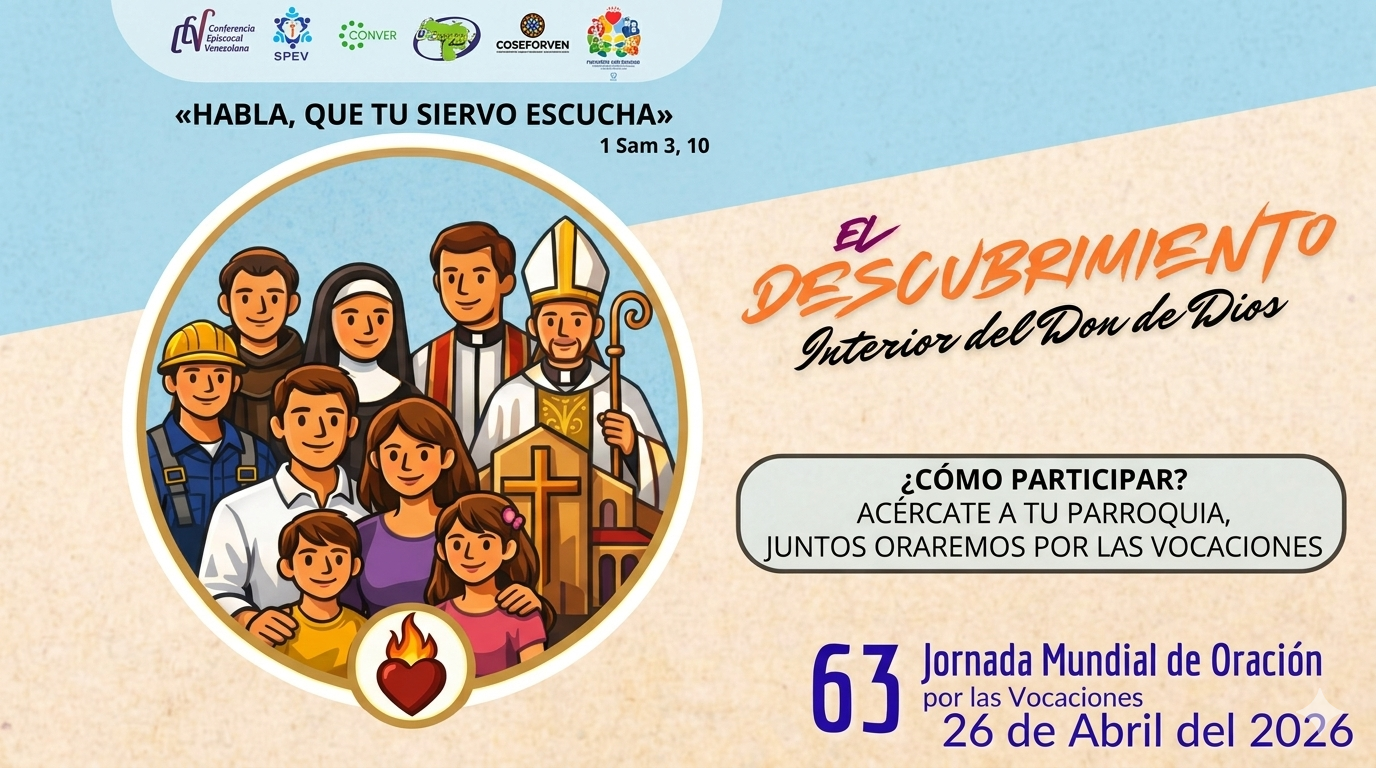 El Secretariado Permanente del Episcopado Venezolano (SPEV), a través del Área de Seminarios y Vocaciones del Centro de Ministros Ordenados y Vida Consagrada, anima a toda la feligresía a celebrar la LXIII Jornada Mundial de Oración por las Vocaciones.