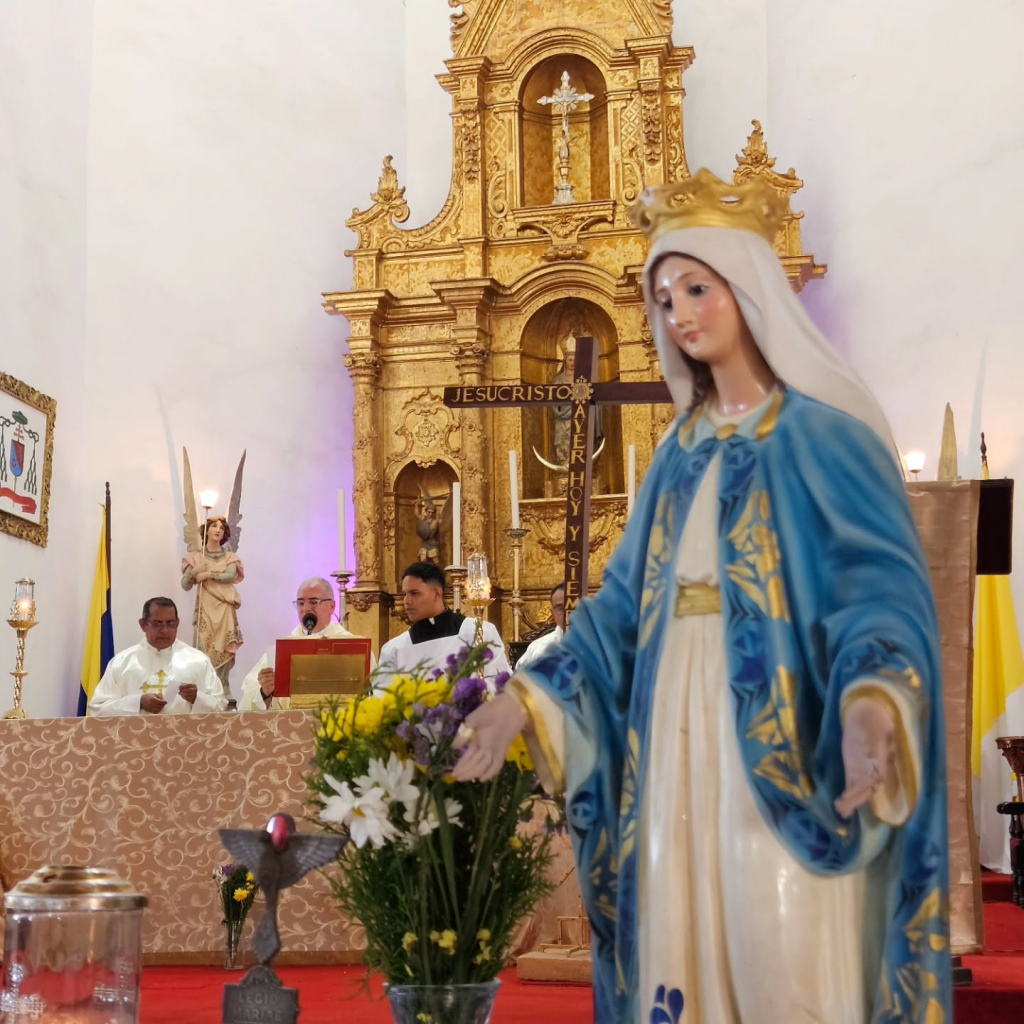 La Eucaristía jubilar fue presidida por el Pbro. Alfidio Caldera en un ambiente de oración y gratitud por la misión que la Legión de María ha desempeñado en las comunidades parroquiales de esta Iglesia particular de la Arquidiocesis de Coro, reafirmando el compromiso de vivir y anunciar el Evangelio al estilo de María, con humildad y constancia en el 75 aniversario de la presencia legionaria la localidad.