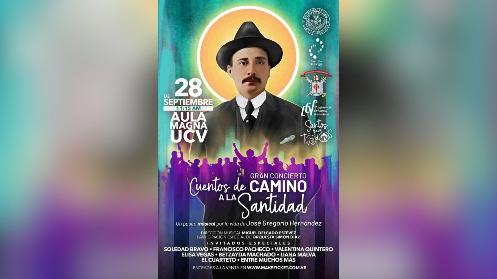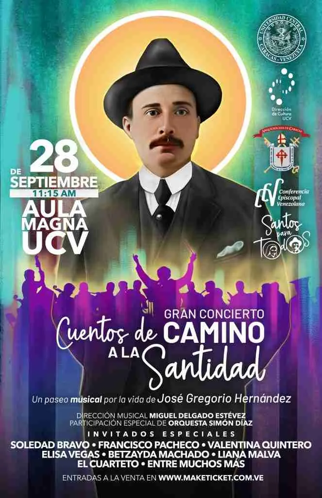 Caracas. El próximo domingo 28 de septiembre, a las 11:15am, se realizará el concierto «Cuentos de Camino a la santidad», en el Aula Magna de la Universidad Central de Venezuela, con la participación de Soledad Bravo, Francisco Pacheco, Elisa Vegas, Betsayda Machado, Liana Malva, entre otros.
