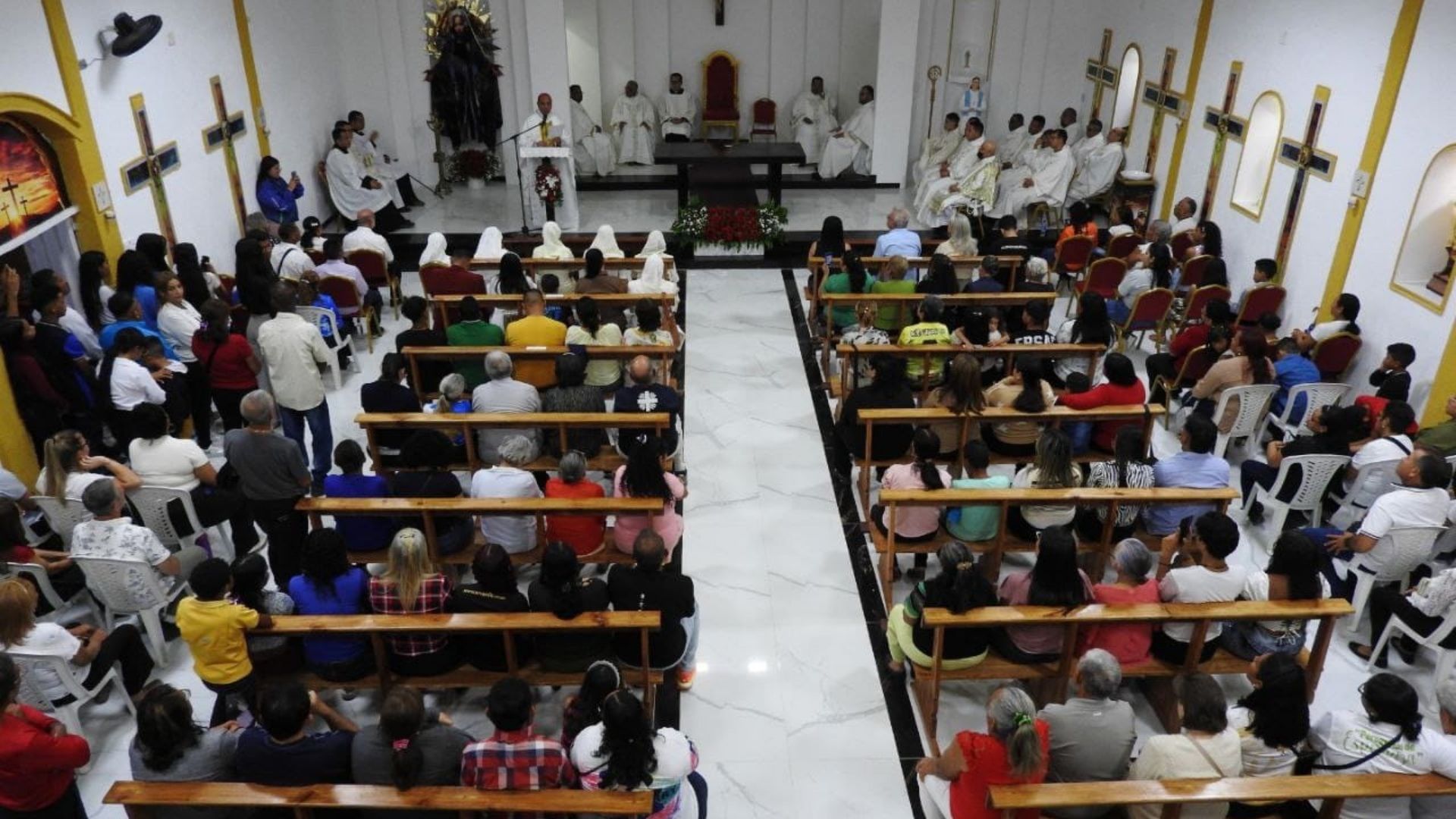 En su homilía, Mons. Quintero se mostró notablemente conmovido y agradeció a los benefactores que participaron en la construcción de este nuevo templo, calificándolo como un signo visible de Dios.