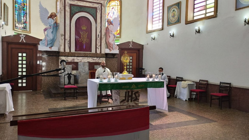 Al llegar al templo, comenzó la Santa Eucaristía presidida por el Pbro. Alexander Arias, administrador diocesano; y concelebrada por el Pbro. Alfredo Hernández, el Pbro. Víctor Meléndez, el Pbro. César Villalobos y Monseñor Ángel Andueza.