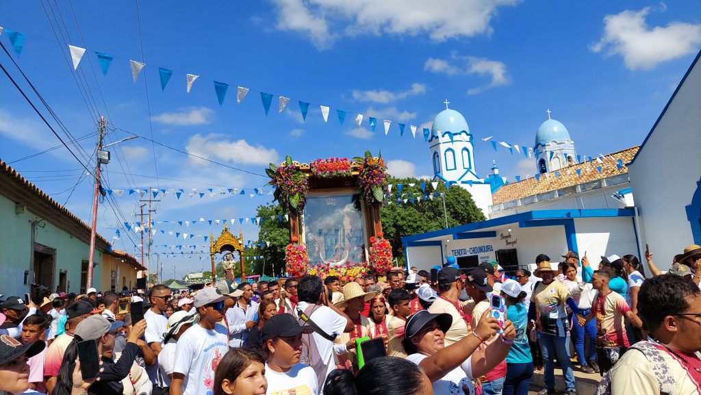 Carora. A las 4:00 de la mañana del 04 de octubre de 2025, el Sagrado Lienzo de Nuestra Señora de Chiquinquirá de Aregue inició el recorrido de la XIX Marcha de la Fe, desde Carora hasta la población de Aregue con más de 30 mil fieles que le acompañaban.