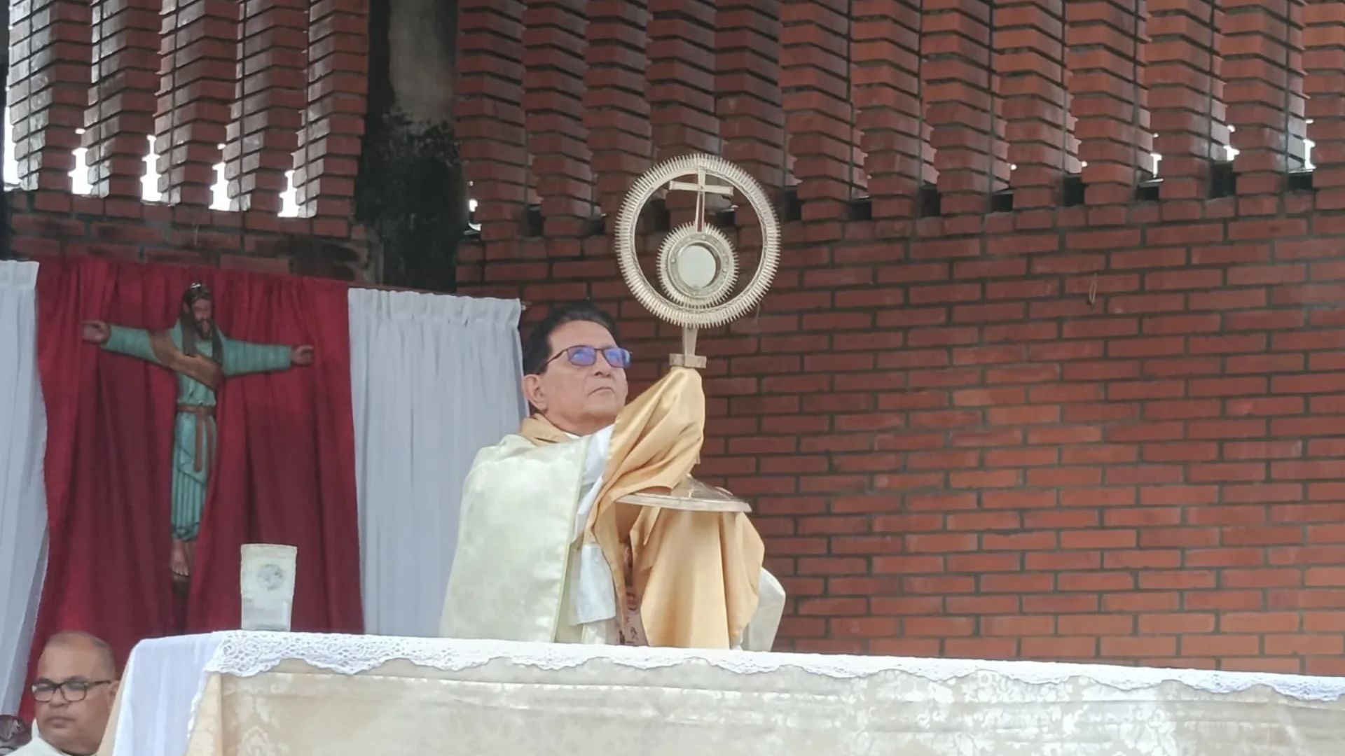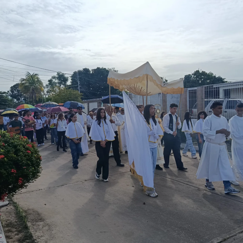 «Imploramos bendición y buen tiempo al Santísimo Sacramento para todo nuestro pueblo afectado por las lluvias», expresó Mons. Torres en la procesión Eucaristica que recorrió las calles de la Urbanización, ante la devota compañía de vecinos y transeúntes.