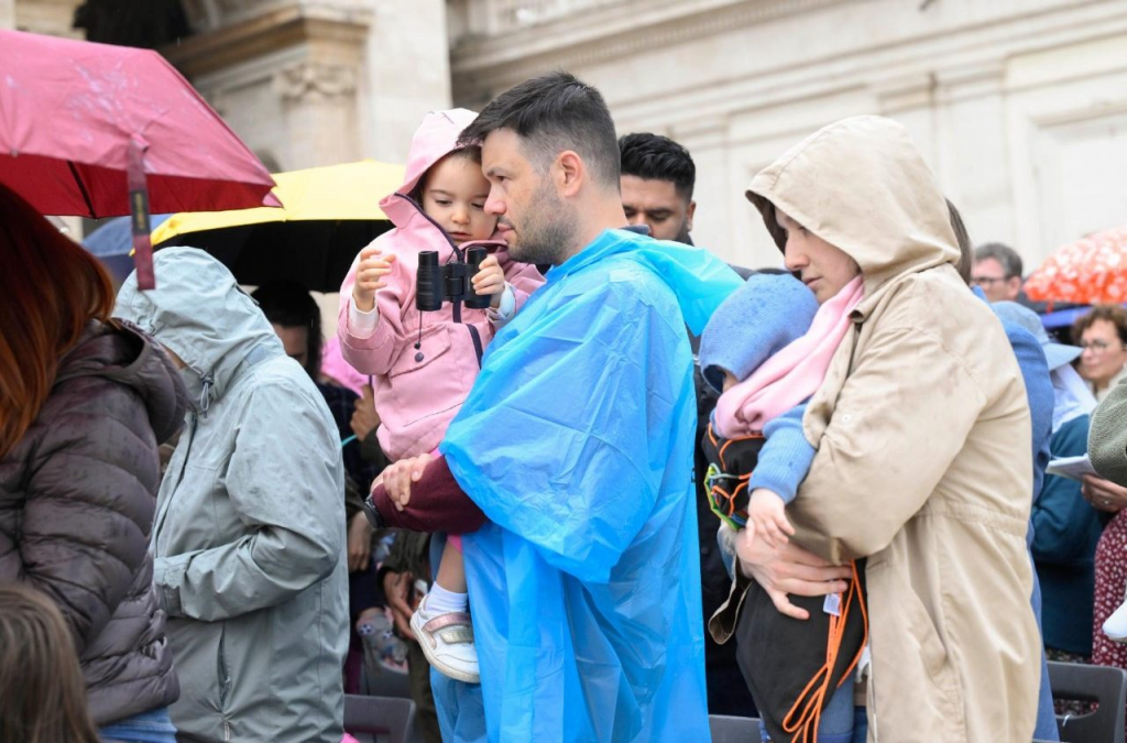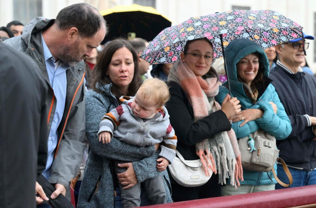 Bajo una persistente llovizna otoñal, los paraguas multicolores se convirtieron en signos de comunión entre los más de 30.000 fieles y peregrinos llegados desde los cinco continentes, que participaron con emoción en esta celebración jubilar.