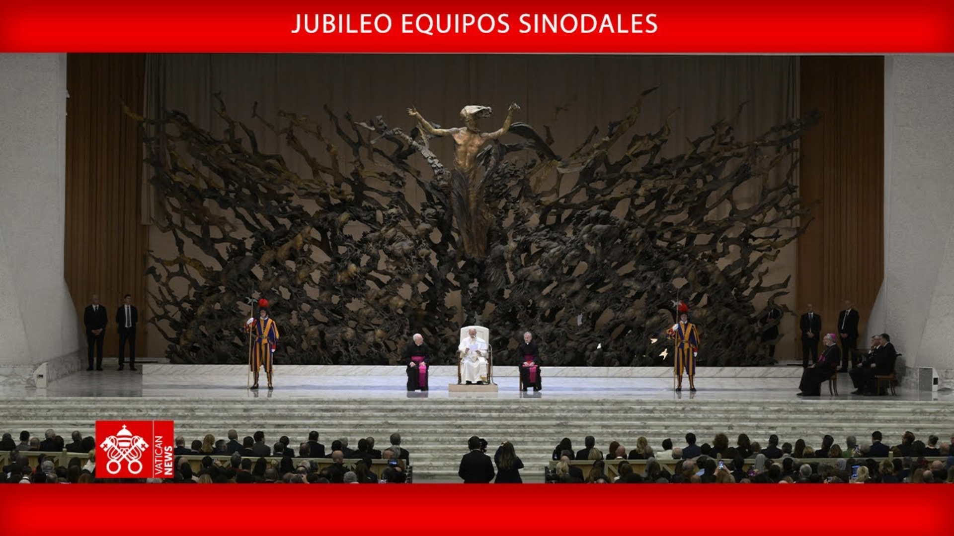 Aprender. Esta es una de las palabras más recurrentes en las respuestas que León XIV dio esta tarde, 24 de octubre, a los representantes de los Equipos Sinodales y los órganos de participación, que celebran su Jubileo estos días. Actúan como portavoces de siete regiones geográficas, que presentaron al Papa su trabajo para implementar la sinodalidad en sus respectivos contextos eclesiales. Moderando este momento de diálogo entre los delegados y el Obispo de Roma en el Aula Pablo VI, se encontraba la hermana Nathalie Becquart, subsecretaria del Sínodo de los Obispos, organismo que celebró su sexagésimo aniversario este año. Recordando la afirmación anterior de Pablo VI que la primacía y la colegialidad no pueden vivirse sin la sinodalidad con todos los bautizados, la religiosa inició el encuentro presentando una síntesis de los frutos del proceso sinodal a nivel continental (que tuvo lugar de octubre de 2021 a octubre de 2024). Junto al Papa están el cardenal Mario Grech, secretario general del Sínodo de los Obispos, y monseñor Luis Marín De San Martín, O.S.A., subsecretario de la Secretaría General del Sínodo.