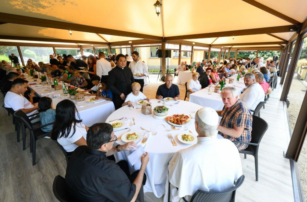 Antes del almuerzo, el obispo Vincenzo Viva de Albano también saludó a los invitados, presentándoles a León XIV: «Al observar los rostros de quienes se sientan hoy en estas mesas, vemos la belleza del Evangelio hecho vida concreta y testimonio de nuestra identidad como Iglesia de Albano». Añadió: «No hay un ‘nosotros’ y un ‘ellos’, no hay benefactores ni beneficiarios: hay personas que comparten el pan y, con él, sus historias, sus luchas, sus esperanzas».
